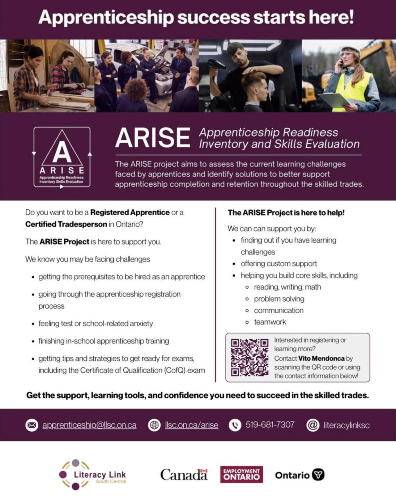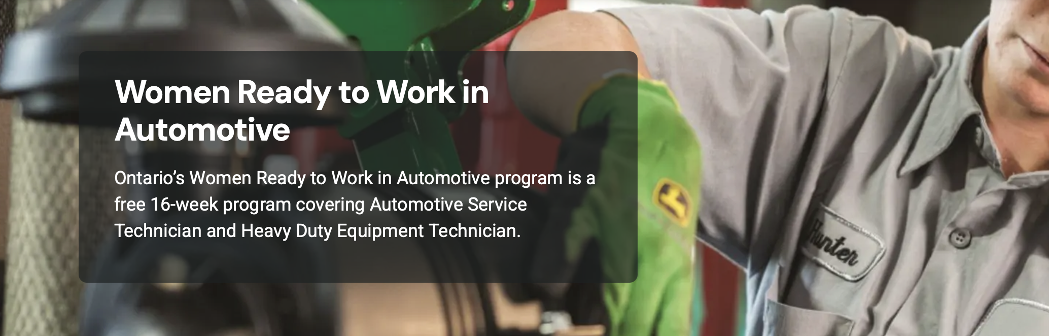 Women Ready to Work in Automotive – A 16-week program (8 weeks in-class + 8 weeks paid placement) introducing automotive trade skills and real work experience.