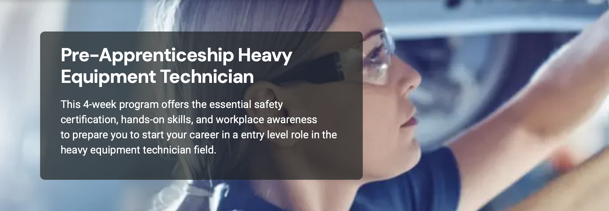 Pre-Apprenticeship Heavy Equipment Technician – A 4-week course offering safety certification and foundational skills for aspiring heavy equipment technicians.