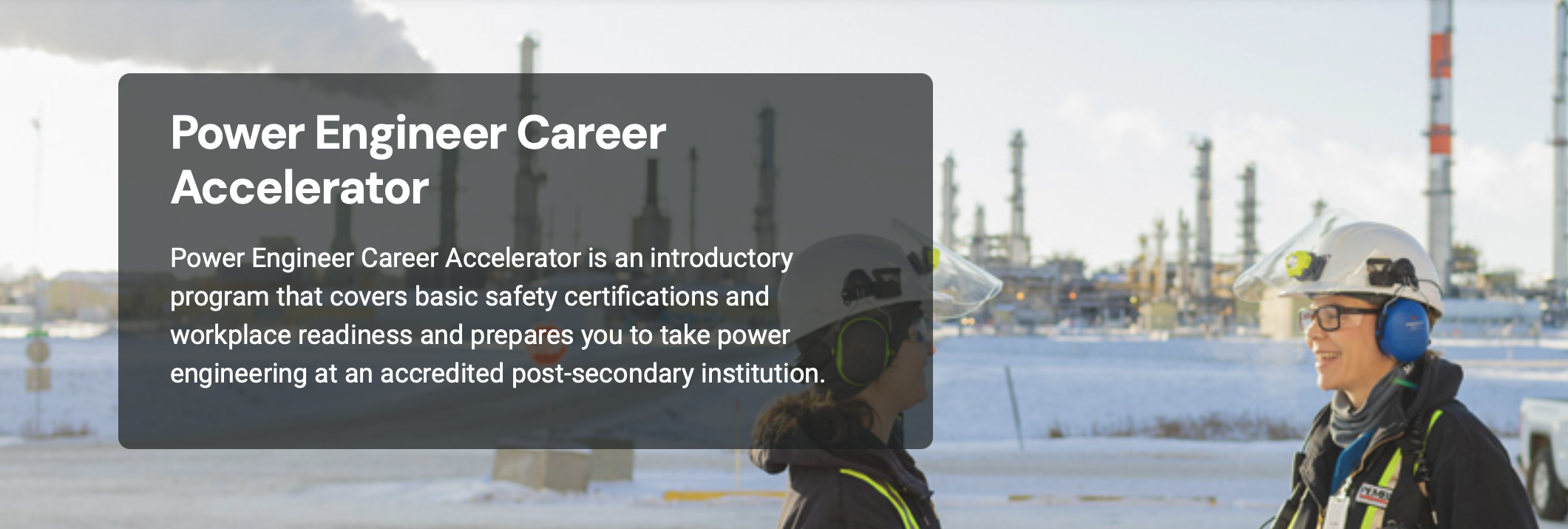 Power Engineer Career Accelerator – A 2-week introductory program covering safety and workplace readiness to support future power engineering studies.